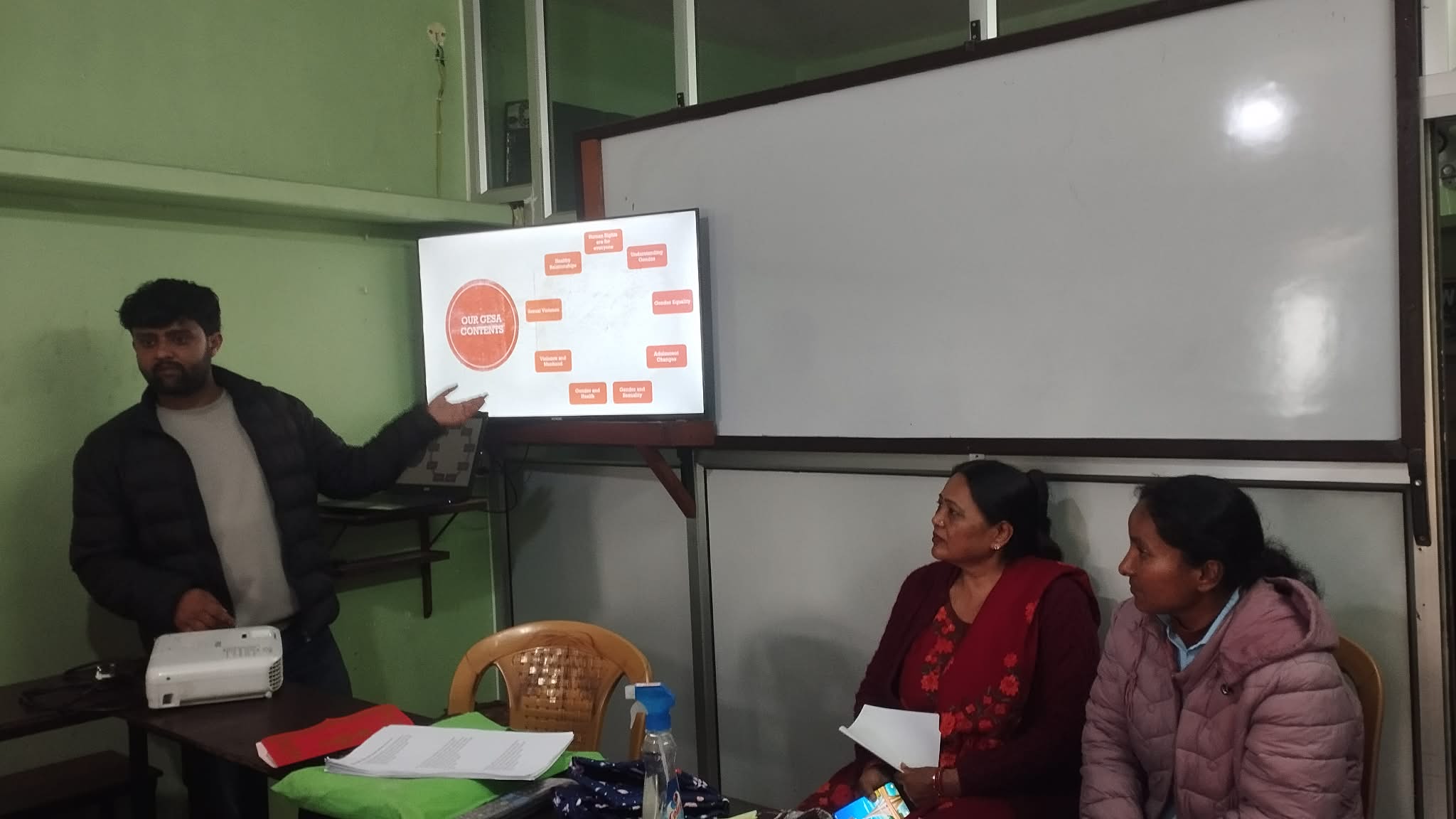कार्यक्रममा जेसा प्रोजेक्ट अफिसर सौगात अधिकारीले लैङ्गिक समानता र सामाजिक अभियानबार जेसाको कार्यक्रमबारे प्रष्ट पारेका थिए । एमएचएम प्रोजेक्ट अफिसर निथोई बिकले महिनावारी स्वच्छता सम्बन्धि समुदायमा रहेको मान्यता र आफ्नो कार्यक्रमको उद्देश्यबारे प्रष्ट पारेका थिए ।