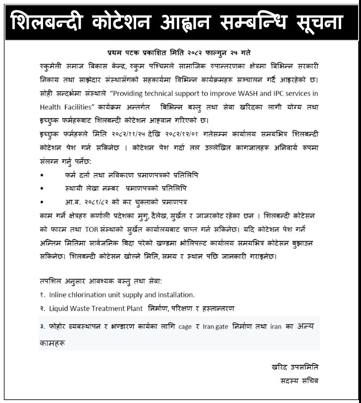 सामाजिक विकास कार्यालय रुकुम पश्चिमको कोटेशन आह्वान सम्बन्धी सूचना